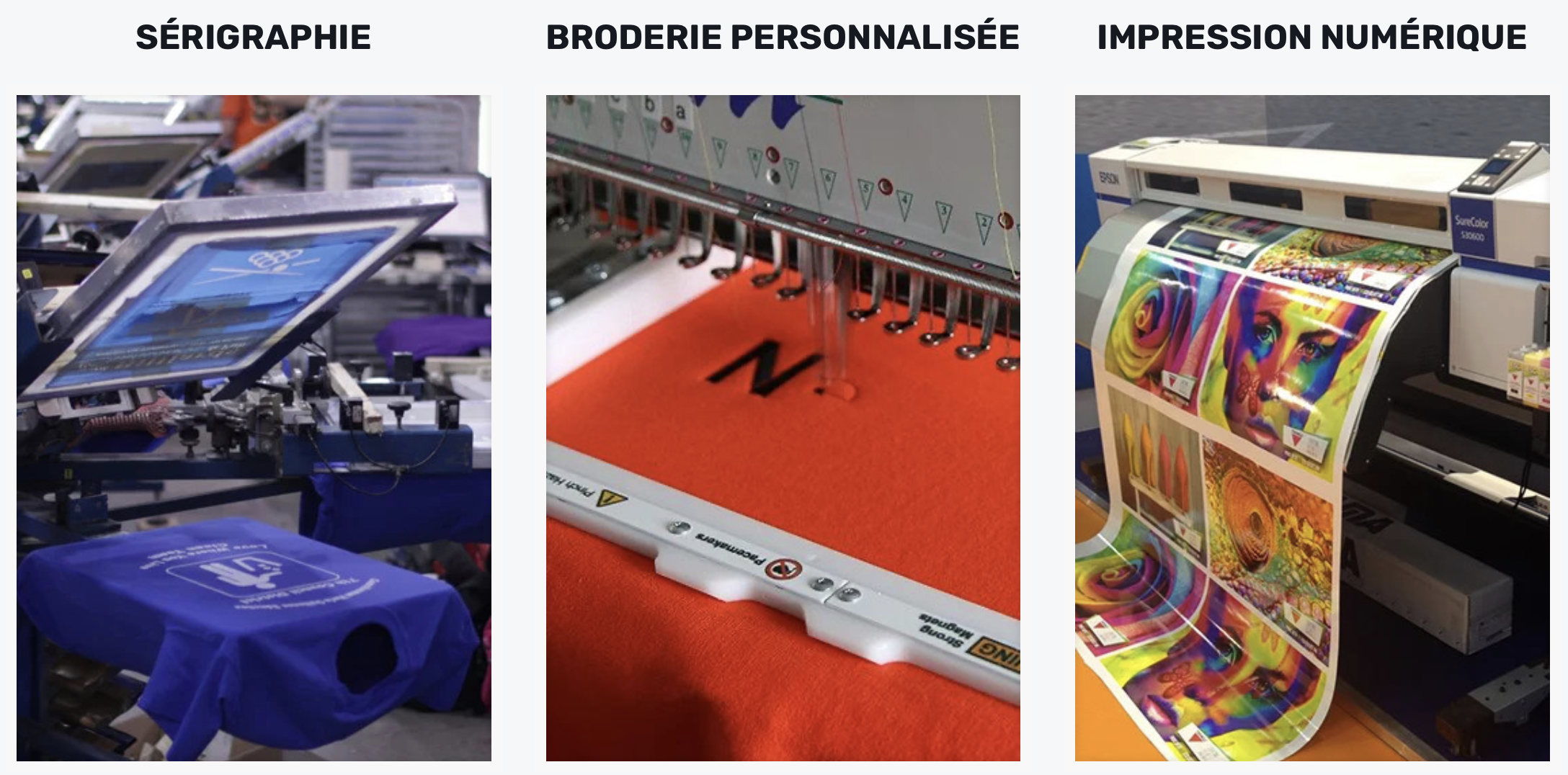 Le principe consiste alors à trouver le produit adéquat selon les stocks et les délais possibles, et le personnaliser par des techniques de marquages diverses et variées.