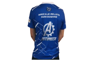 Parmi les projets réalisés, le club de tennis de St Jean de Fos a bénéficié d’un design sur-mesure, avec un visuel travaillé autour de la balle de tennis. Autre exemple, le club de pelote de Buros pour lequel un joueur a été fondu dans le maillot, créant un visuel original et dynamique.